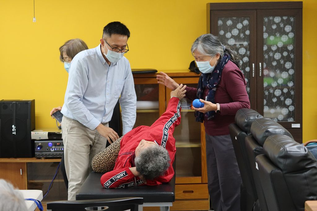 • 講師說明使用花生米按摩球舒緩手臂講師說明使用花生米按...
